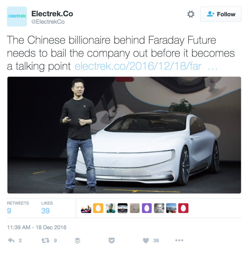 STATE TREASURER WILL LOOK INTO FARADAY FUTURE’S FINANCING ON CHINA VISIT listed company, Leshi. Mr. Yueting, the Chinese investor, has backed Faraday Future, the company approved to build an electronic car factory in North Las Vegas. “Leshi’s shares halted trading on December 7 ... Access Document
